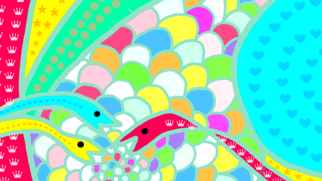 黄色系も使いながら仕上げ、Little-hirokoを赤いくじらのしっぽの上に乗せました。