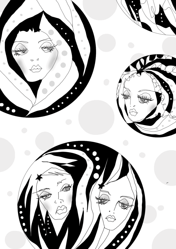 Little-hiroko(女の子)とsmile(ネコ)が不思議な世界を旅する様子をメインに、たまに女性の絵や抽象画、それ以外の絵も描いています。