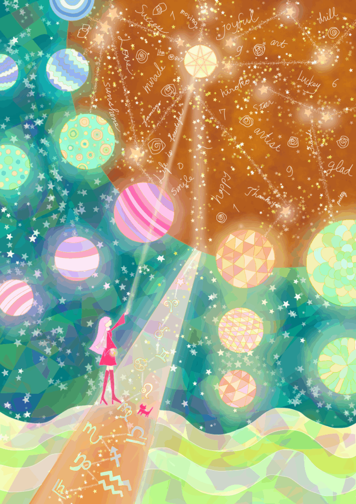 Little-hiroko(女の子)とsmile(ネコ)が不思議な世界を旅する様子をメインに、たまに女性の絵や抽象画、それ以外の絵も描いています。